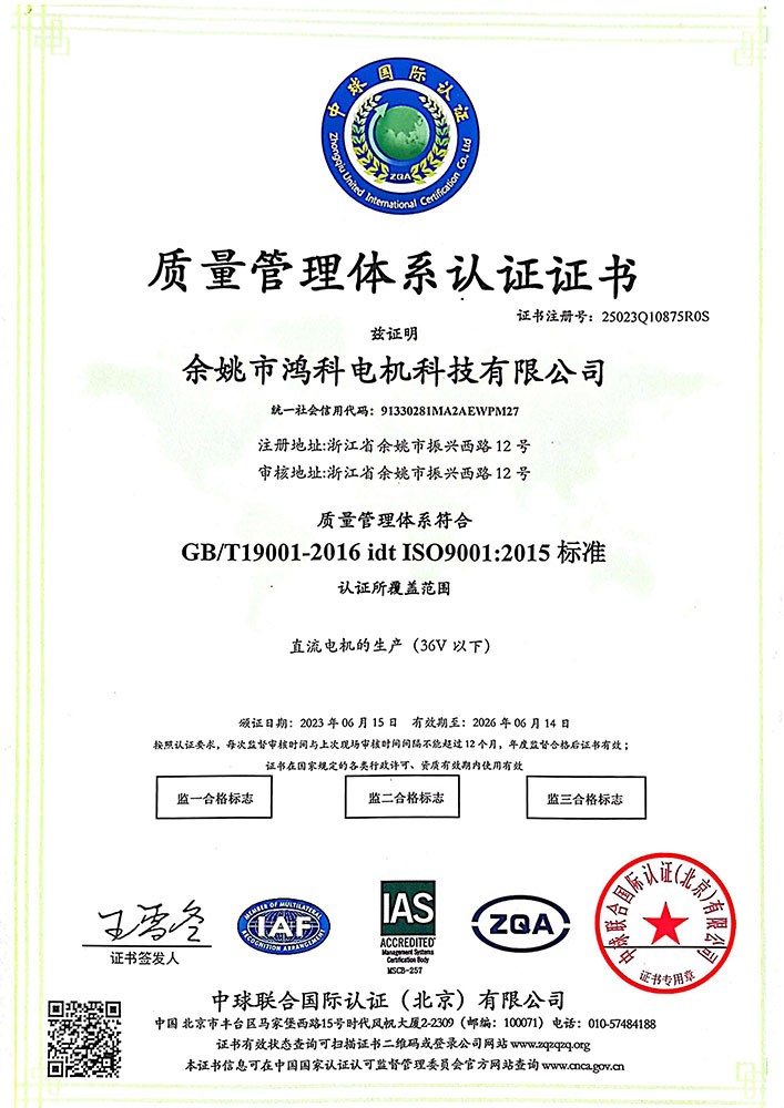 鴻科電機(jī)先后通過IS09001質(zhì)量體系認(rèn)證,我們高度重視電機(jī)技術(shù)的發(fā)展和產(chǎn)品質(zhì)量的不斷提高。我們擁有經(jīng)驗(yàn)豐富的研發(fā)團(tuán)隊(duì)和先進(jìn)的質(zhì)量控制檢測設(shè)備,確保我們能夠提供定制的高品質(zhì)產(chǎn)品,年產(chǎn)量達(dá)1000萬臺(tái)。